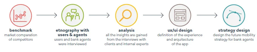 Aiming to understand the sales process and agents' associated behaviors, we decided to follow agents in their daily routine working at their branch and visiting clients at their companies. Moreover, we organized co-creation sessions with them to prototype the ideal app to solve their most common hustles.
