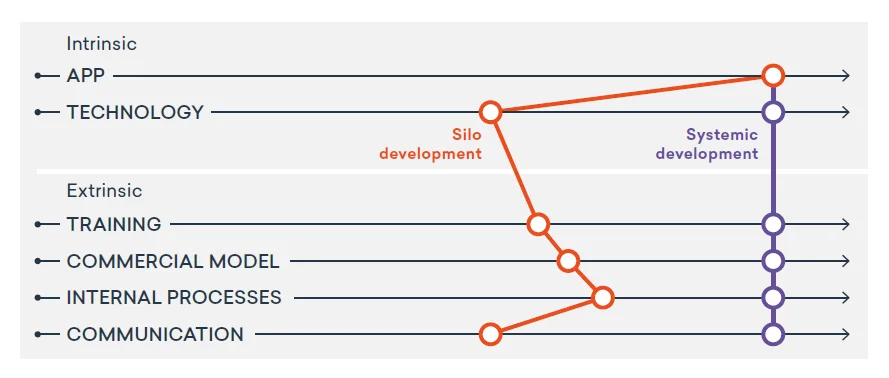 - The app was not user friendly and the agents found little value to use it with clients. In adittion, there were several types of employees with differentiated digital technologies learning curves which resulted in different adoption levels within the sales force.