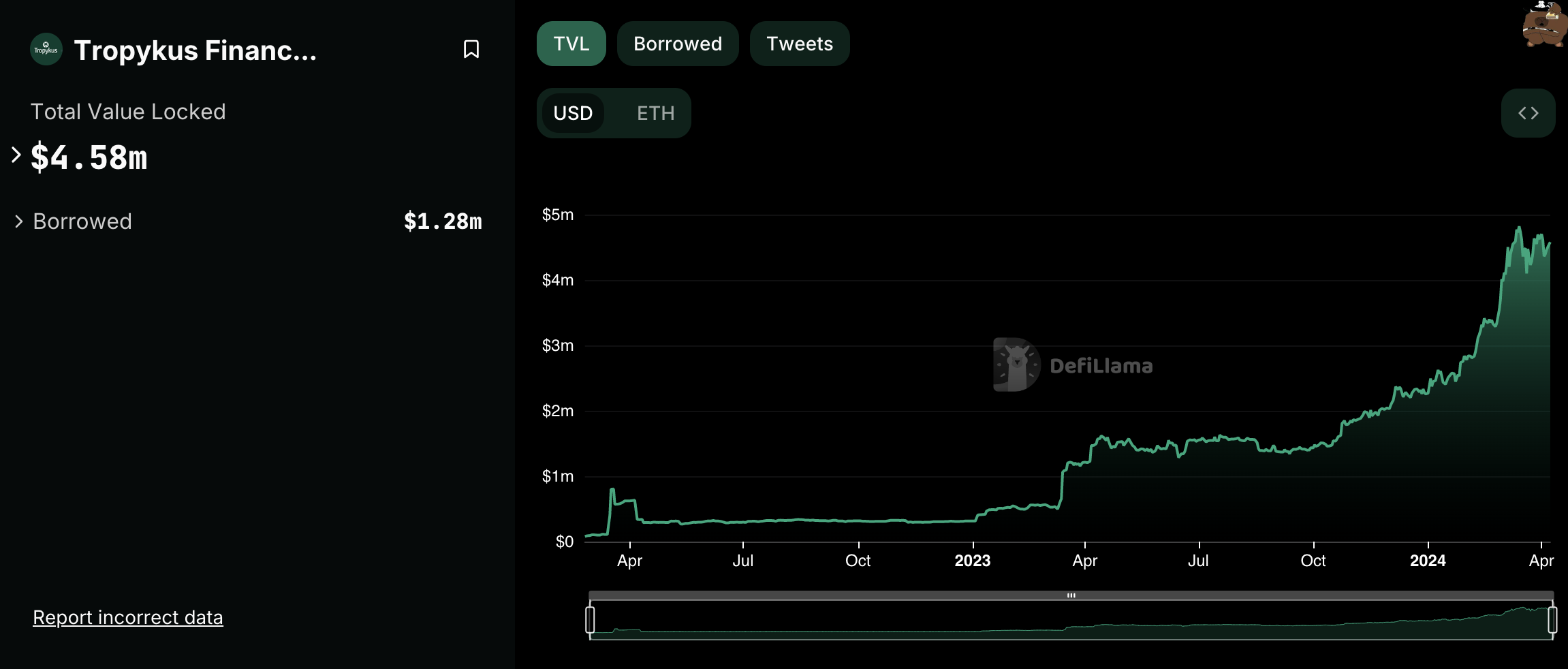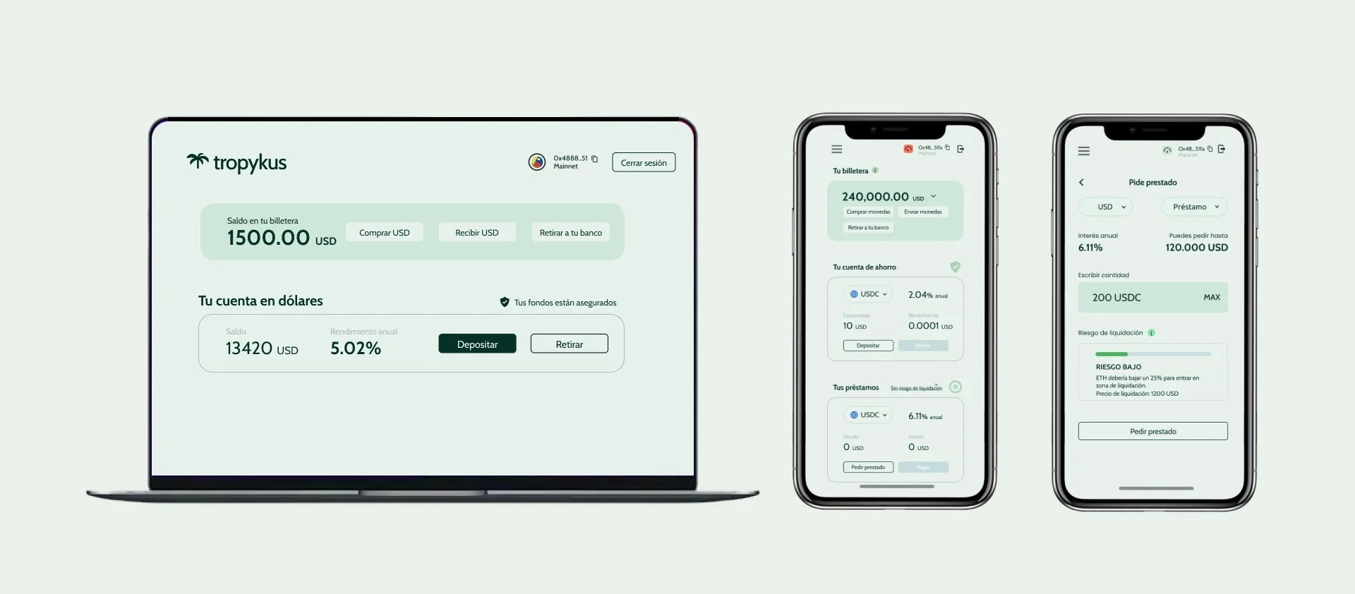 The mission of Tropykus is to offer better saving options and fairer loans than local banks around Latam. It was launched publicly on 1st February of 2022 and as today it had more than 9.1 million USD deposited in the platform and 2.6 million USD borrowed, reaching a company valuation of 3.25M USD.